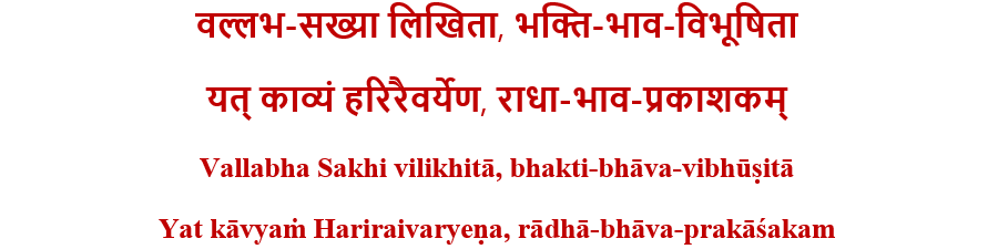 I therefore make one final humble request of Shri Harirai Mahaprabhuji. Please inspire and bless me with the ability to convey the correct interpretation of each Sakhi to the best of my ability.